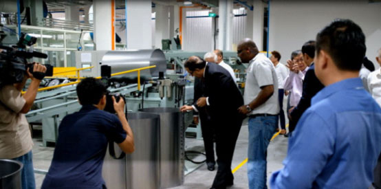 剪彩儀式后,易華仁部長(zhǎng)參觀了工廠鋼桶生產(chǎn)線,并給予極高評(píng)價(jià)。